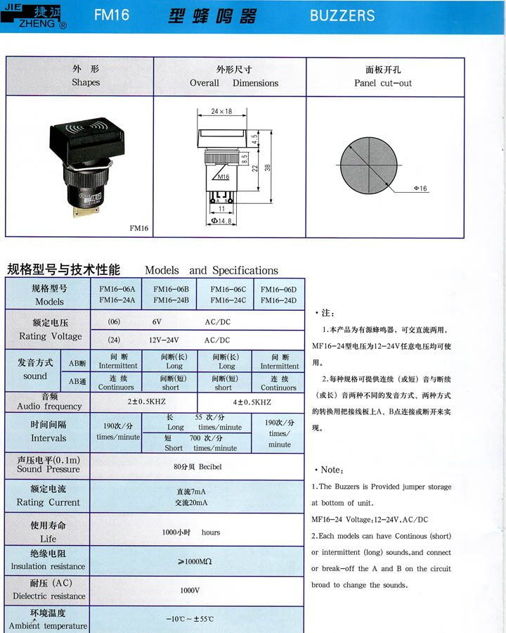 • FM16蜂鳴器 產(chǎn)品型號:FM16